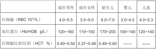 1. 红细胞(RBC)血红蛋白(Hb/HGB)红细胞比容/压积(HCT)