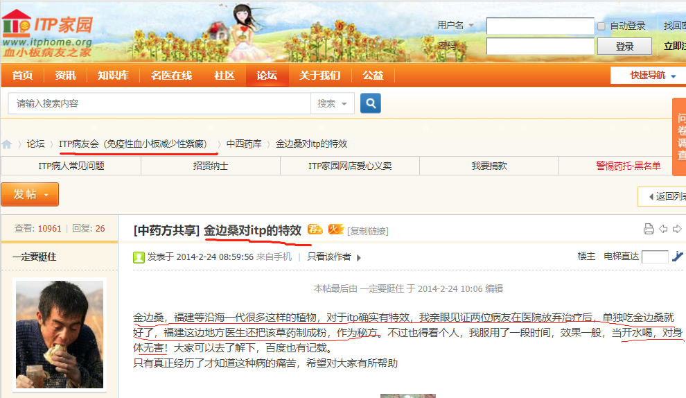 ITP病家园紫癜病友网是病友们讨论,用药治疗经验分享的地方!愿每一个人早日康复!病友们加油。 |